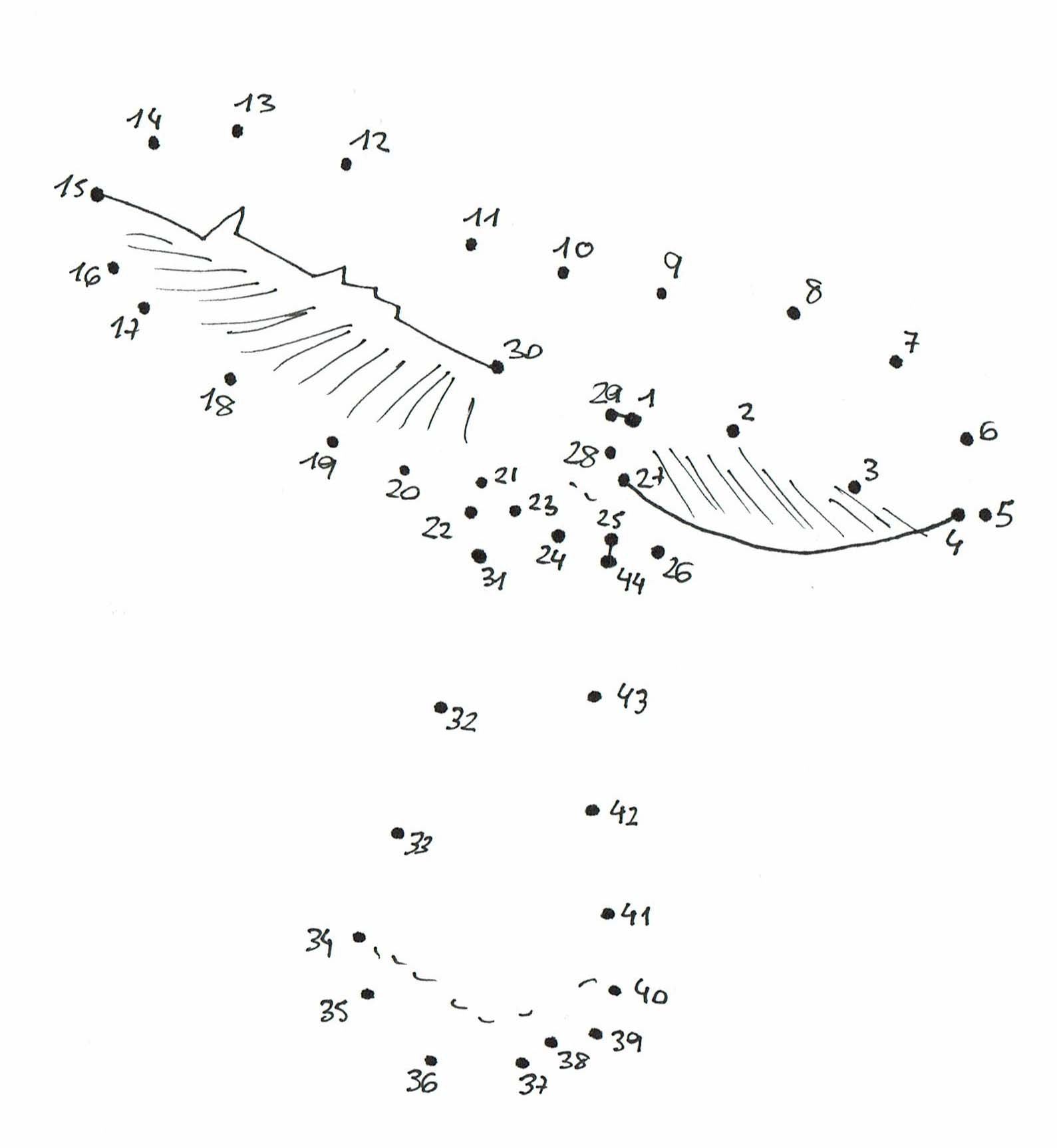 - Repasa con los rotuladores las líneas punteadas coincidiendo cada zona con su color correspondiente